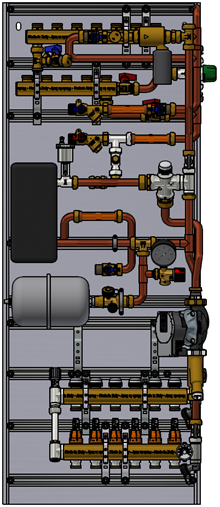 Modulen leveres i tre versjoner: for gulvvarme, radiator eller kombinasjon radiator og gulvvarme. Lokale sirkulasjonspumper sikrer stabil drift og god reguleringsautoritet i hver boenhet.
