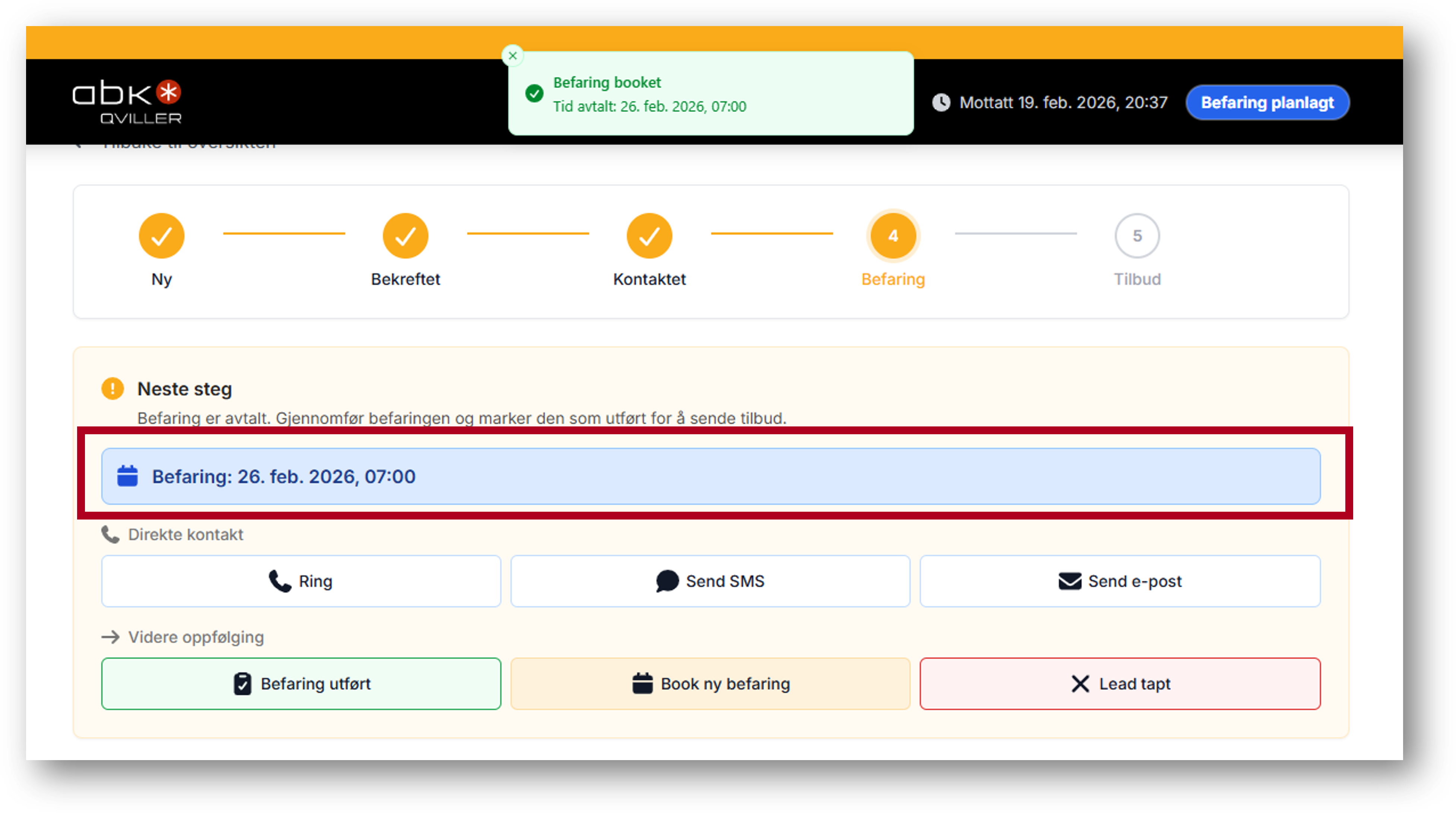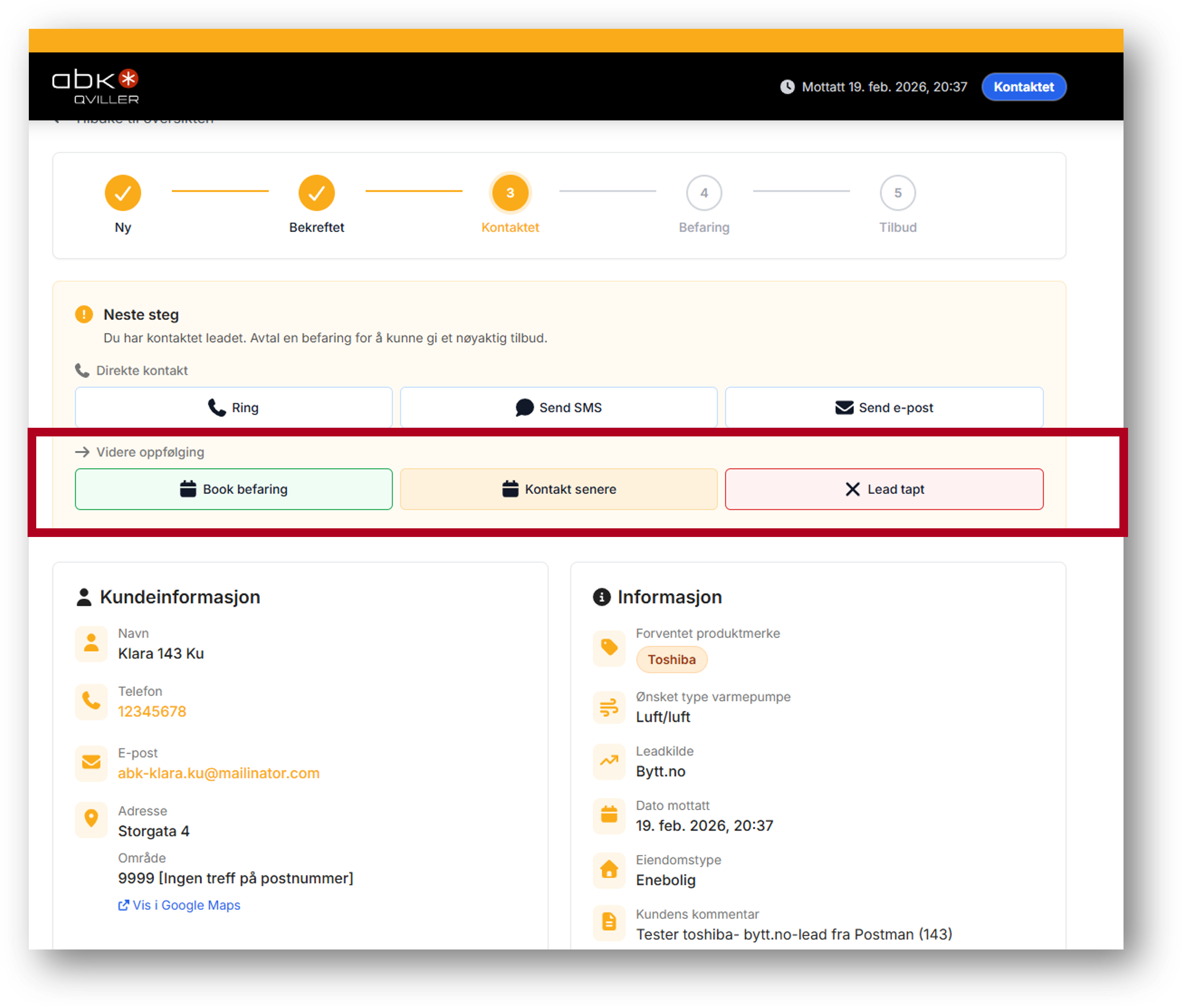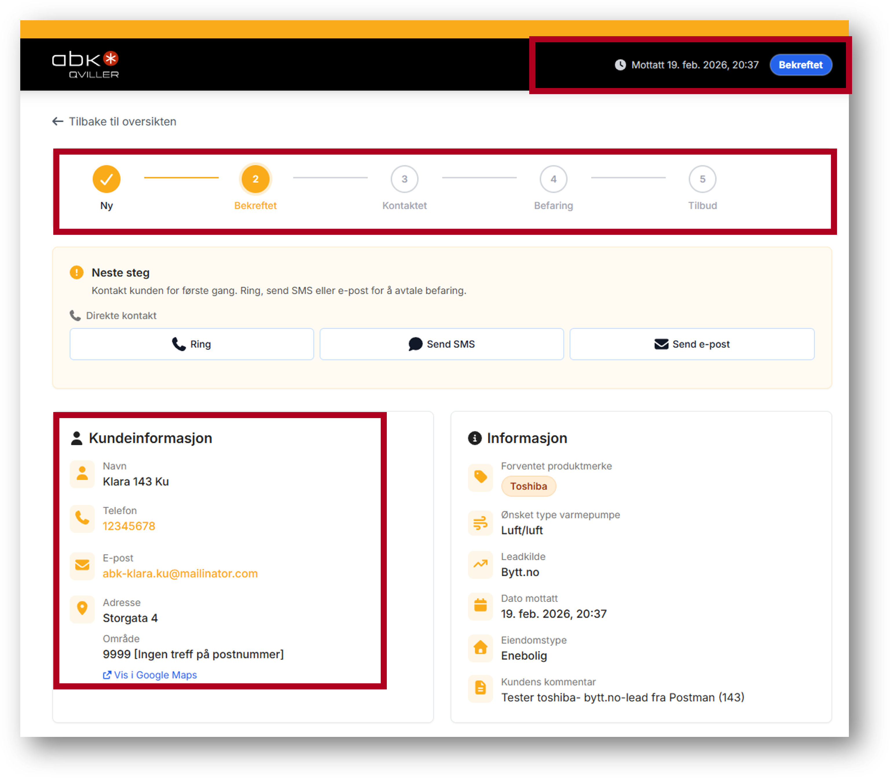 Når Leadet er bekreftet, vil du motta kontaktopplysninger.