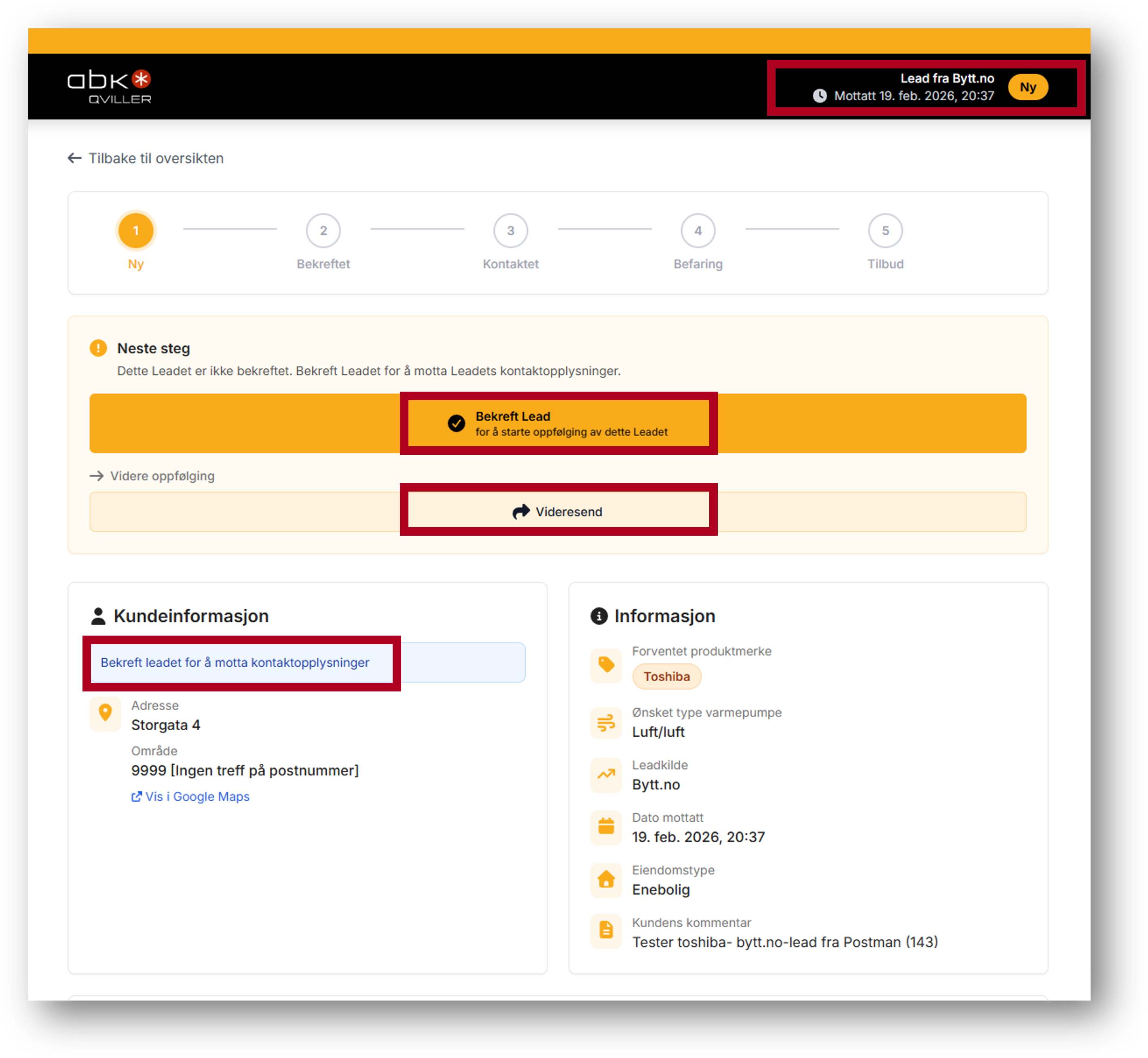Du har mottatt et nytt Lead og må bekrefte eller videresende det.